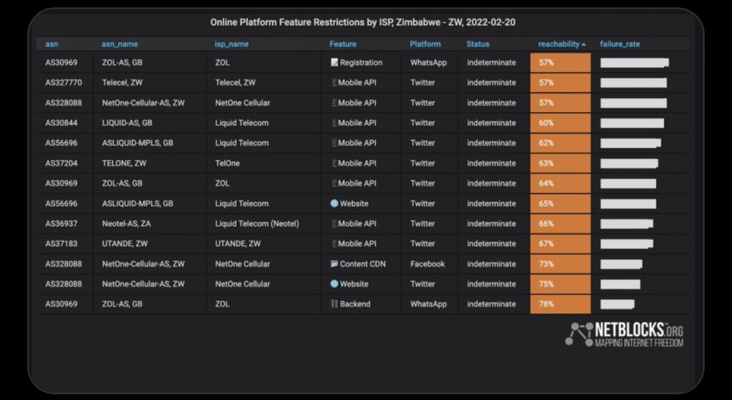 Network data from NetBlocks confirm a significant slowing of internet service for many users in Zimbabwe on Sunday 20 February 2022, as a major political opposition rally is held in Harare. The incident impacts multiple operators and has prevented live streaming from the Yellow Sunday demonstration, which seeks to unseat the ZANU–PF ruling party.